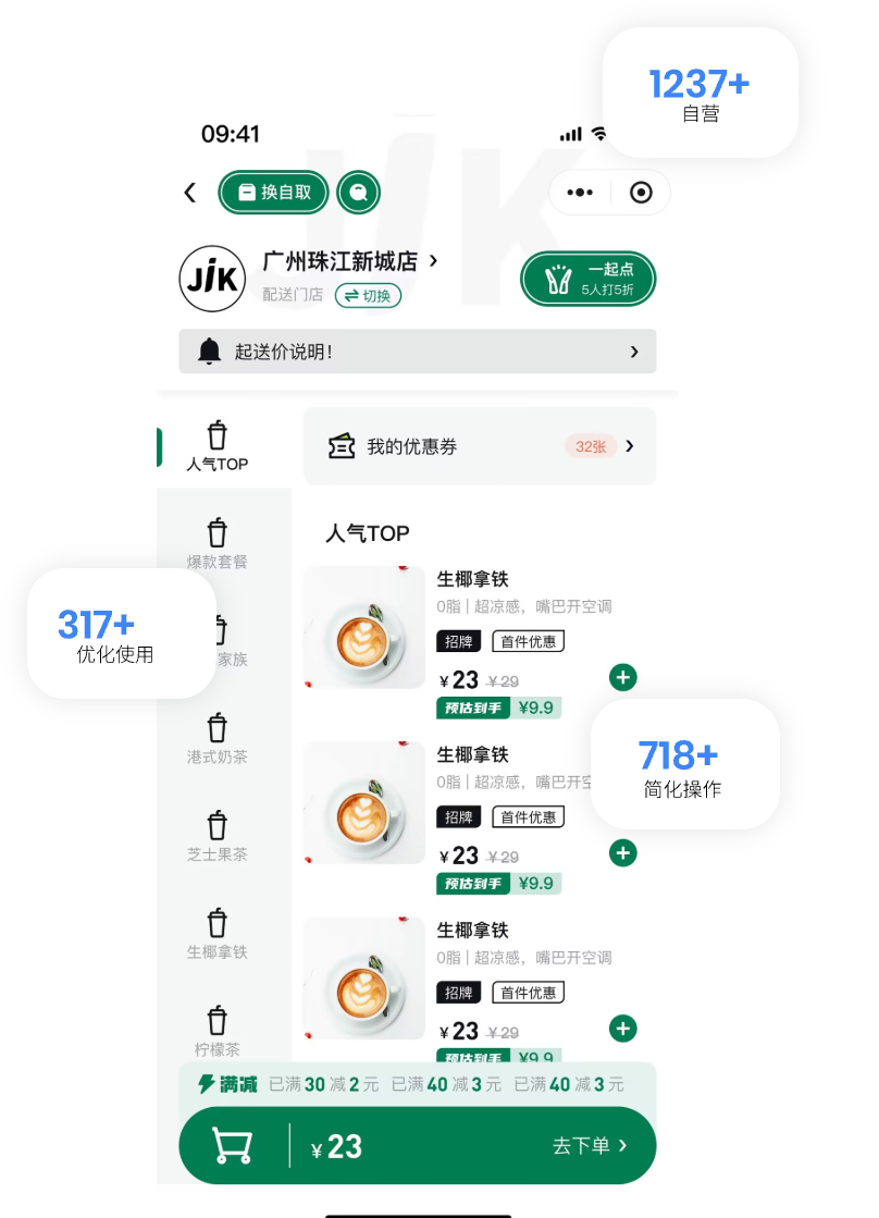 商城,外卖,自取,三场景融合,统一会员,简洁高效。
